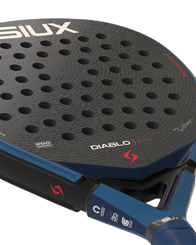 Siux Diablo Pro 2026 Royal Blue er ketcheren for den avancerede eller professionelle spiller, der søger den perfekte balance mellem kontrol og power, med overvægt mod kontrol. Dette ikoniske bat, signeret af og udviklet i samarbejde med Tino Libaak, har en elegant, dråbeformet silhuet med medium balance, hvilket sikrer alsidighed i alle spilfaser. Slagfladen er konstrueret med stærkt 24K TeXtreme kulfiber, som giver ekstrem stivhed, præcis boldføling og fremragende holdbarhed. Kernen af EVA Pro-gummi giver et medium-hårdt touch med en hårdhed på 7/10, hvilket sikrer hurtig boldudgang og kontrolleret kraft. Den ru, matte 3D-finish øger grebet på bolden markant, hvilket forbedrer topspin og effekter. Diablo Pro 2026 er designet til at dominere og leveres med det innovative Switch Strap-system for optimal komfort og hygiejne.