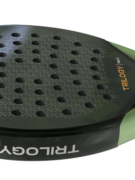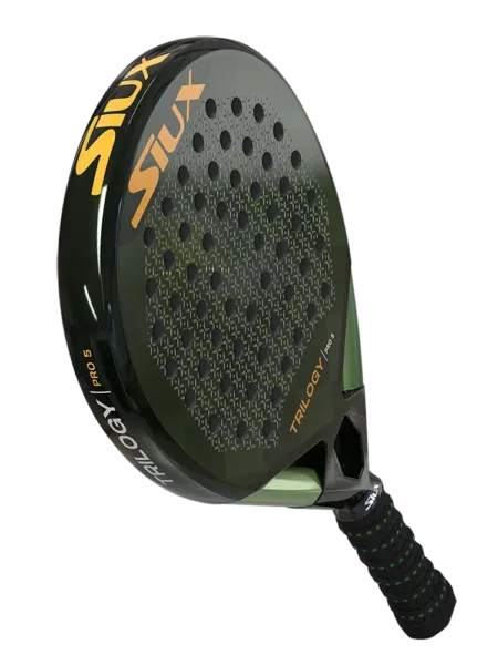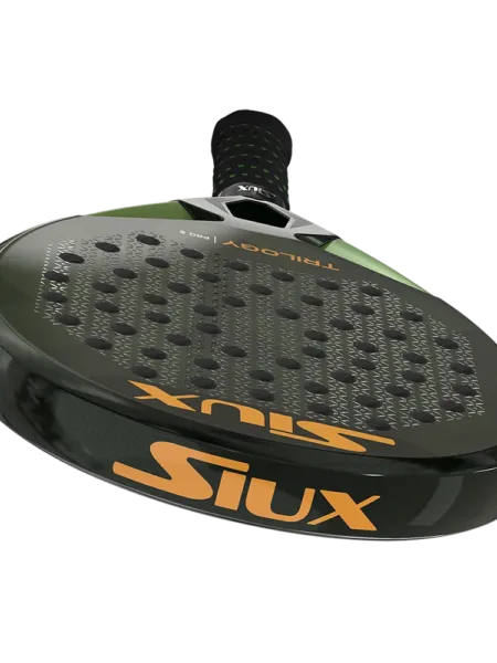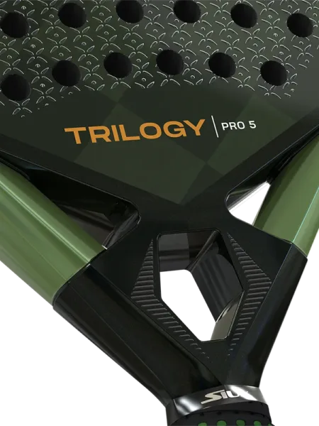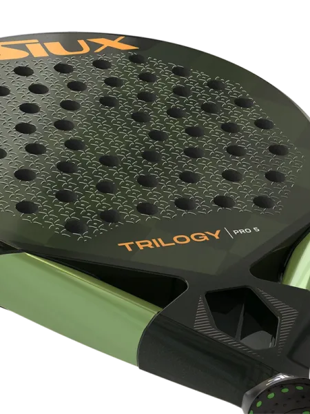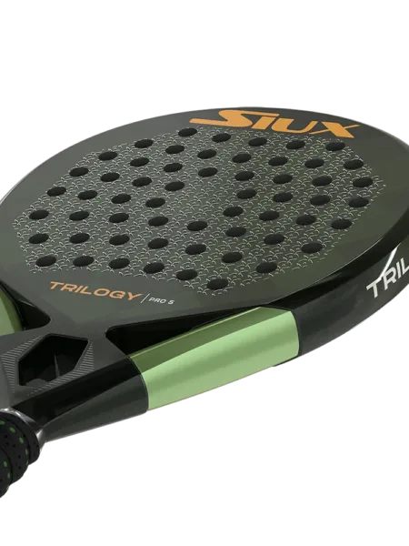 Siux Trilogy Pro 5 er et kontrolbat til spilleren der også vil have power i slagene. Eva Soft kombineret med 40K Carbon i slagfladen giver en helt unik kontrol og god fart, specielt i forsvar fra baglinjen. 3D overfladen har et godt greb i bolden og giver god effekt i slagene.