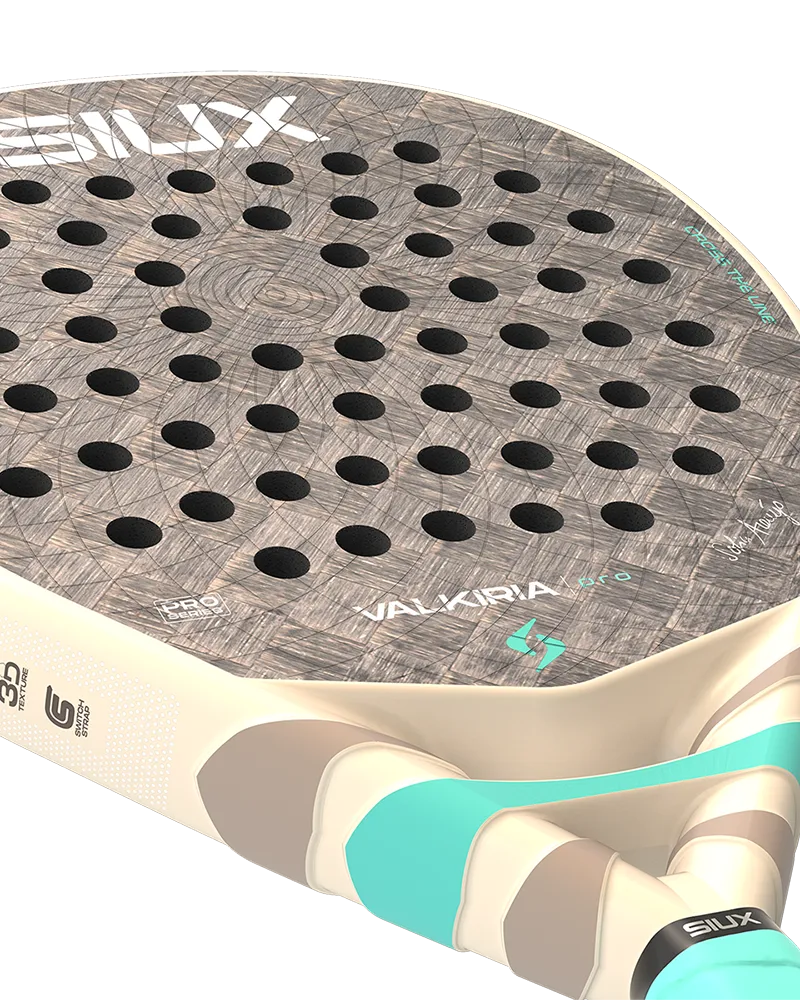 Siux Valkiria Pro 2026 er udviklet i samarbejde med den professionelle spiller Sofía Araújo og er designet til den krævende spiller på avanceret niveau. Battet er en del af Siux’ Pro-serie og leverer en exceptionel balance mellem power og præcis kontrol, med mest fokus på kontrol. Den dråbeformede (Hybrid) batfacon kombineret med en medium balance sikrer et alsidigt spil, hvor du kan dominere både i forsvaret og angrebet. Slagfladen er konstrueret med stærkt 24K aluminiseret kulfiber for optimal respons og en fast boldføling. Kernen består af medium-hård EVA Soft gummi, der giver god komfort og boldudgang. Den matte overflade har en 3D-sandstruktur, som maksimerer dit spin og boldgreb. Med en let vægt på 340-360 gram er Valkiria Pro 2026 desuden let at manøvrere, hvilket gør den ideel til hurtige reaktioner og et teknisk spil.